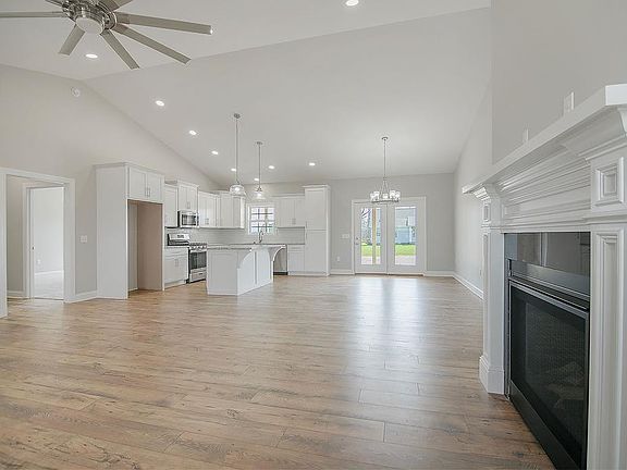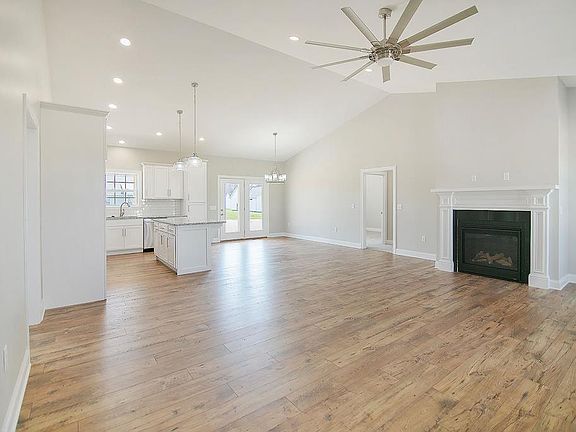 You're going to love this standout NEW CONSTRUCTION in a NEW DEVELOPMENT. It has many upgraded features throughout such as 9 foot ceilings, granite counter tops, natural gas fireplace, oversized concrete back and front covered porches, oversized garage door, soft close custom cabinets, gas stove, 2 walk-in closest in the primary suite, ceramic walk-in shower and free standing tub off of primary suite, custom craftsman trim throughout, large laundry room, and black fixtures as well hardware. This home offers a split floor plan with the primary suite and two other bedrooms separated between the kitchen and living room areas. Each bedroom have oversized closets with shelving and tons of storage space. The floors will be LVP wood floors in the kitchen and living room with carpet in the bedrooms, tile in the bathroom and laundry. Schedule your showing today! This home will not last long. Final clean up to happen this week!