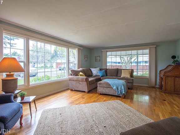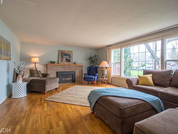 Gardeners delight on .25 acre lot. Mature landscaping with fruit trees, raspberries, raised garden beds and garden shed! Large picture windows take in the beauty of the well planted gardens. Beautiful built in brick fireplace under covered patio to enjoy the peaceful setting all year long. Hardwood floors, large kitchen. Living room and family room each have gas fireplace and gives this home great separation of space.