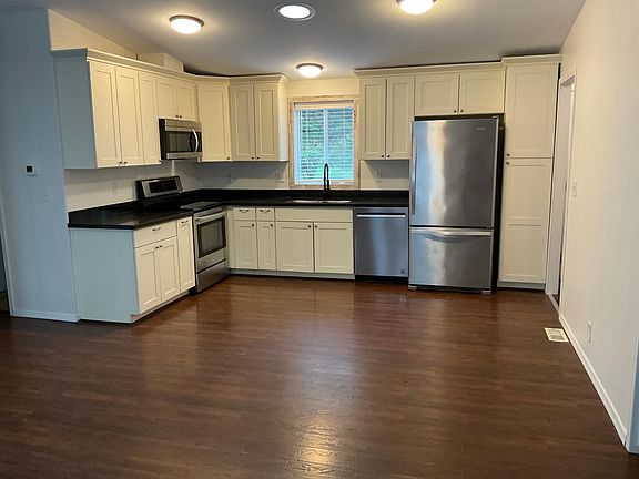 3 bedroom, 2 bathroom 1,150 sq/ft house. Fully fenced in yard with back patio, garden beds, and a fire pit with a pergola surrounding it with wisteria growing up each end. The neighboring home has 2 goats that will occasionally come to the opposite side of the fence to visit. There are young apple trees in the yard, and one has already started producing fruit. The roadside of the yard is fully lined with rhododendrons that bloom with multiple colors in the spring, as well as 2 cherry blossom trees along the driveway. There are 2 sheds with power for storage as well as a car port. The home has an open concept layout with wood floors throughout. Moderns stainless steel appliances in the kitchen with stacked washer and dryer included. Located almost directly between Poulsbo and Kingston, you are minutes away from all the amenities while still having the peace and quiet of living in the woods. The property is on a well with amazing water as well as a septic system. This home is currently occupied so please respect my tenant's privacy, but will be available November 1st. I will begin taking applications now and schedule showings at the beginning of next month. The tenant will be responsible for trash, power, and internet. $2,600/month. RV storage is not permitted on this property. Water and sewer included 1st month = $2,600 Damage deposit = $2,600 Non refundable pet fee of $100/pet. No more than 3 pets allowed. 4 miles from Kingston Ferry 5 miles from Poulsbo 14 miles from Bangor Navy base 7 miles from Keyport Navy Base 17 miles from Bremerton Naval Shipyard Great home for family and pets. RV storage is not permitted on this property. 12 month lease, 6 month lease could be a possible for the first 6 months only. Water and sewer included 1st month = $2,500 Damage deposit = $2,500 Non refundable pet fee of $100/pet. No more than 3 pets allowed. 4 miles from Kingston Ferry 5 miles from Poulsbo 14 miles from Bangor Navy base 7 miles from Keyport Navy Base 17 miles from Bremerton Naval Shipyard
