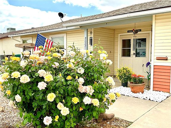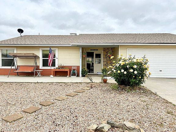 This active senior community home has a very comfortable layout with a good sized back yard and approximately 10.5' side yard that can have direct access to the back yard to bring your toys? Bright living room with laminate flooring leads to a charming eat-in country kitchen with tile flooring and Corian countertops. Electric range and refrigerator stay. The two roomy bedrooms each have access to a bathroom. There is a spacious mirror door closet and a walk-in closet as well. There are sliding doors from the living room, kitchen and bedroom that go out to a 7841 sq.ft. backyard. There are fruit trees (including lemon, plum, orange, peach, grapes) and two small sheds and one good sized shed that was installed 2 years ago. A two car garage, with auto opener, has direct access into home, and has the laundry area. With very low fees, the HOA offers many amenities like two large heated pools, jacuzzi, horseshoe pits, billiards room, gym, wood workshop, lawn bowling, ceramics, art, knitting, Thai Chi, yoga, line dancing, and many clubs including Travel Club, Garden Club and Friendship Club. There are many other classes and clubs you can join too. This charming house is waiting for you to bring your paint brush and make it your own.