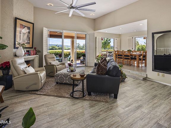 Wake up to sweeping Four Peaks and mountain views in this premier golf course retreat, perfectly situated on the 18th hole of the Quail Course. The coveted east-facing backyard offers ideal morning sun and cool afternoon shade, creating the perfect setting to relax or entertain. Enjoy a spacious patio with built-in hot tub overlooking the fairway and serene desert landscape. Inside, nearly 1,900 sq ft of light-filled living space features 2 spacious bedrooms, 2 baths, and a dedicated office with custom built-ins, desk, and wet bar. A beautiful kitchen anchors the home with ample counter space and an open layout ideal for everyday living and entertaining. Come enjoy all that Rio Verde has to Offer!