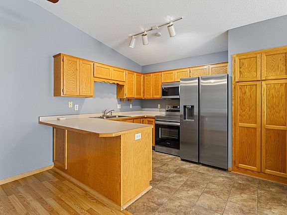 BACK ON THE MARKET - BUYERS FINANCING FELL THROUGH. Great Looking Twin home ! Open floor plan with a vaulted ceiling, kitchen, dining room, living room , full bath and 2 bedrooms on the upper level. Basement is a walkout with 2 bedrooms and a family room. Extras include : New stainless steel appliances, carpet and paint. Outside -there is a storage shed, fenced yard and a Deck. NO ASSOCIATION FEES!!