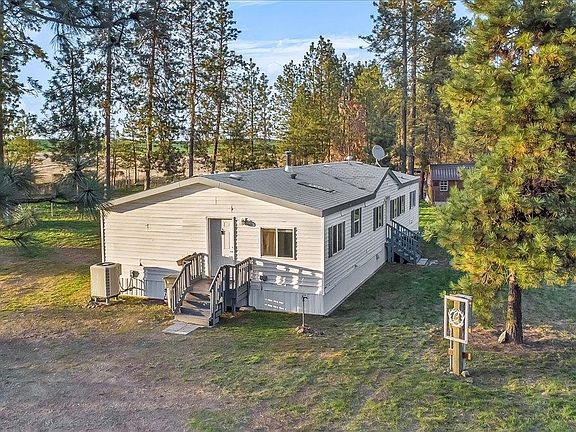 Affordable Living on 10 Acres in Cheney! This 4 bedroom, 2 bathroom manufactured home offers 1,728 sq ft of space and endless potential. The large primary suite features a walk-in closet and private bathroom with a relaxing garden tub. With some love and vision, this home could truly shine. Sitting on 10 beautiful acres, and NO cc&rs, there's room to breathe, grow, and make it your own. Whether you're dreaming of a hobby farm, space for animals, or just quiet country living, this property is a great place to start. Priced to sell—don’t miss out on this opportunity!