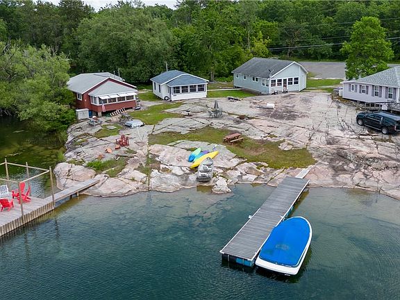 ***ST. LAWRENCE RIVER WATERFRONT RETREAT WITH NATURAL ROCK SHORELINE AND DOCK*** Your sanctuary awaits with this quaint and charming 526 sq. ft. seasonal cottage just steps away from the shoreline. 49 feet of frontage on the majestic St. Lawrence River is yours, along with a 40-foot floating dock perfect for tying up to, jumping off, or casting a line from. There’s a beautiful partial view of the main channel. Clouds Rest Island located directly across from this property protects you from the harsh winds and chop that sometimes accompany River living. Inside the 2 bedroom/1 bathroom cottage, the open concept design allows for amazing views and warm summer breezes through the large front windows. The knotty pine walls and open rafters beautifully compliment the rustic charm. This cottage is conveniently located 10-minutes from Alexandria Bay and shopping, dining, and entertainment. Or if you prefer exploring by water, Boldt Castle and Singer Castle are a 15-minute boat ride away. The plumbing and electrical have been recently re-done. Septic is shared with neighbors. This cottage comes fully furnished, ready to be the backdrop for endless summer enjoyment and memories!