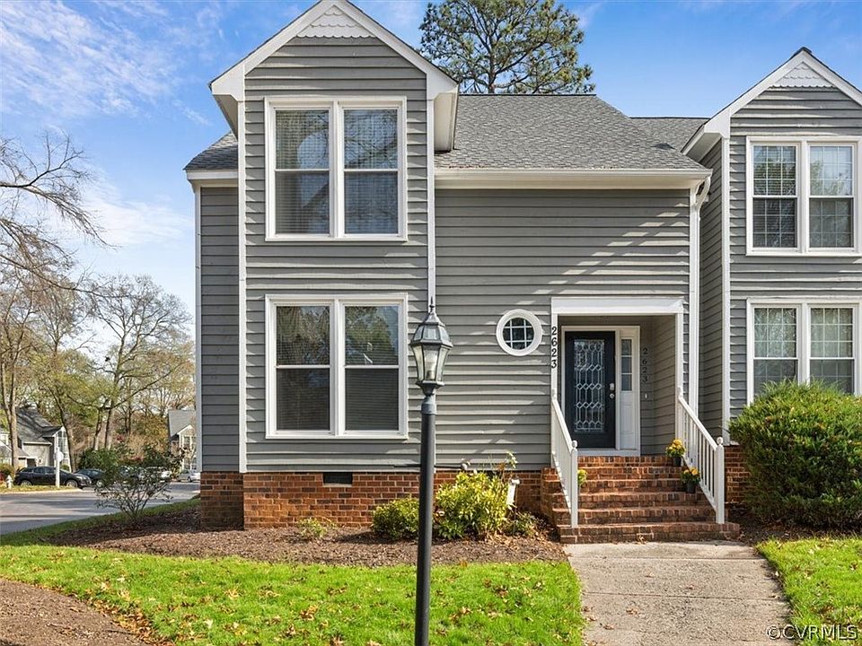This meticulously maintained and updated townhome in sought-after Winchester Pointe is a great way to start your new year. The first-floor bed with a full bath in a PRISTINE end unit won't last long. The welcoming foyer leads you to an updated kitchen with quality cabinets, counters, stylish backsplash, tile, and appliances. Notice the bump-out window above the sink, highlighting one of the features found in end units. The step-down family room has a corner fireplace to cozy up to. The double windows in Fr and two skylights in the dining room allow light to stream in. The glass doors feature upgraded in-frame blinds. Upstairs the Primary bedroom awaits with a renovated bathroom with a beautiful tile surround shower, new vanity, and fixtures. The reading nook and the walk-in closet round out the spacious primary. The secondary bedroom also has a private ensuite bath and double closet. The top of the landing is the laundry closet (W&D convey). The backyard can be fenced in! The attached exterior storage and a nice yard are down the low maintenance steps.