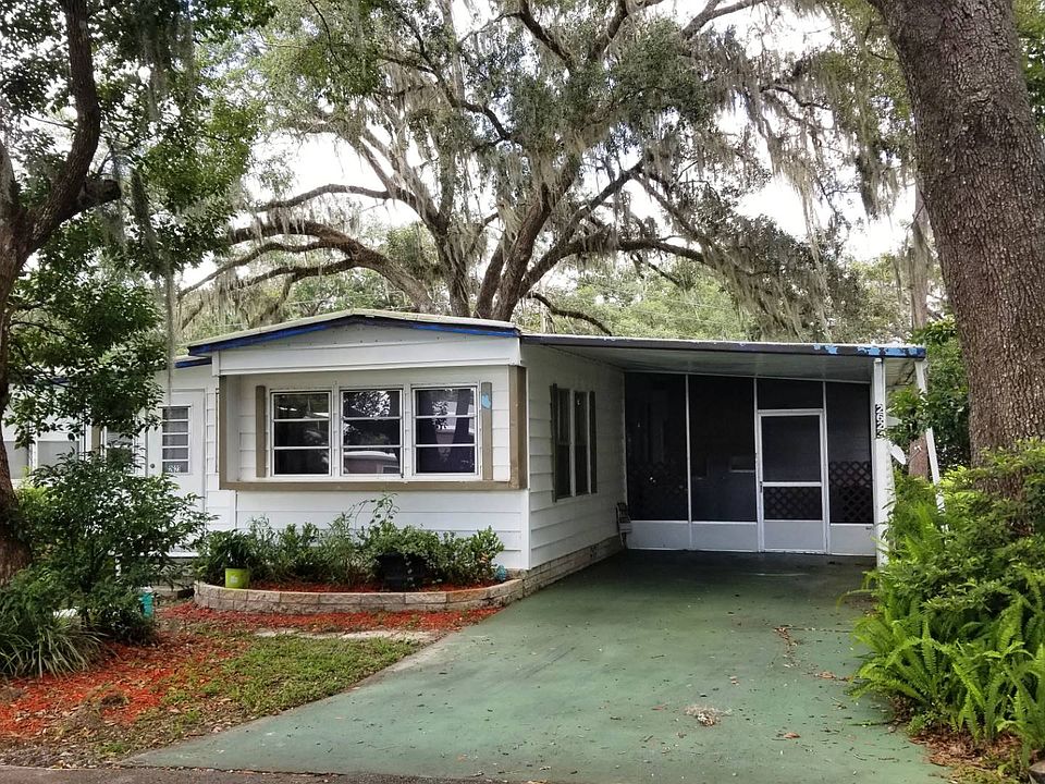 ADORABLE & COTTAGE LIKE! This very attractive single wide has more space than you think with a pull-out addition in living room. Plenty of parking and a carport for one. Screen porch off carport and bonus room attached to screen porch. Bonus room has been recently remodeled with drywall and new carpet. All floors are solid, pretty laminate in living room and new carpet in bedroom. This cute home is perfect for a single person or a cozy couple. Located on a gorgeous lot with nice landscaping and NO REAR NEIGHBORS! This home is in good condition, HVAC working great and no leaks or problems. If you are looking for an affordable home in the lovely community of Clover Leaf Farms please take a look at this one.