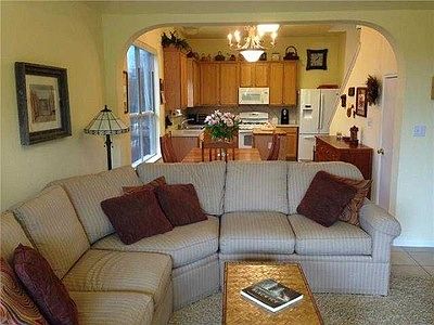 View website: - 4 B/R, 2.5 B/A, w/ bonus room. Crown molding, 9 foot smooth ceilings. Isolated master bedroom w/ private bath; glamour tub, his & her sinks & large closet. 3 bedrooms on other side of home (one could be used as an office too.). Berber carpet in bedrooms & family room. Ceramic tile in kitchen. Formal dining has hardwoods, crown molding & treys. Fenced in backyard with patio AND a covered porch w/ swing. 3 car garage. No smoking. $200/per pet fee (breed restrictive).