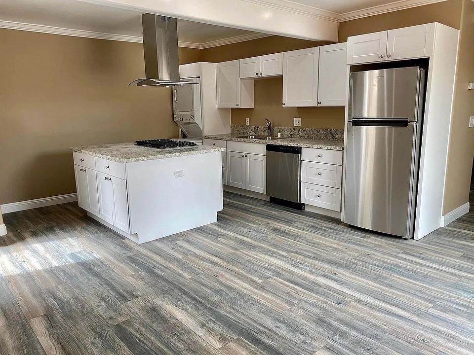 Great apt alternative- all the comforts of a home! Newly built, 1 bedroom, 1 bathroom guesthouse with an oversized, sunny, private patio, private laundry (stackable washer/dryer included) and 1 parking spot. The kitchen features new white shaker cabinets, an oversized granite island, all new appliances (refrigerator included), and tons of storage. The living room opens via a sliding glass door to your own private sun filled patio- perfect for grilling or dining al fresco. Additional storage can be found in the hallway which leads to your all new bathroom (with a deep tub) and your private bedroom. This guesthouse has one shared wall with the main house but its own separate entrance and space. There is an additional $150/per month flat utility fee which covers water, gas, electricity and trash. Come be the first to enjoy this all new, stunning residence! Please call for an appointment - very easy to schedule and see. Why deal with big apt complexes, shared laundry rooms, big/long parking lots when you can have the comforts of your own home instead. Washer/Dryer, Refrigerator included. 1 parking spot in driveway included. Tenant pays additional $150 flat fee per month for gas/electricity/water/trash.