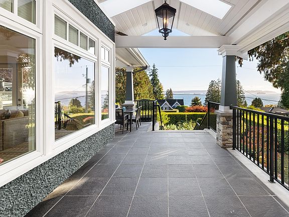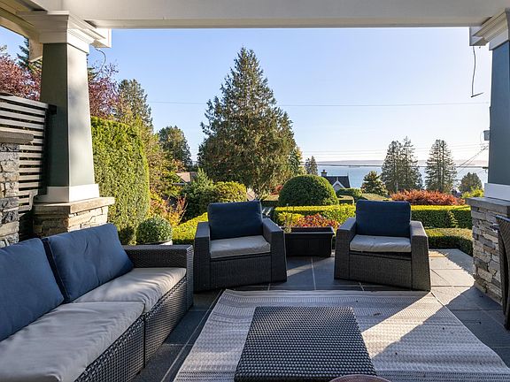Nestled on a beautifully landscaped 7,800sqft lot in the heart of Dundarave, this 4 bed/5 bath custom built home combines timeless charm w/ modern comfort. Main lvl features a bright, open concept design w/ a gourmet kitchen, formal living & dining areas, a custom bar & a warm family room that opens onto a covered veranda w/ an outdoor fireplace perfect for year round enjoyment. High quality finishes include hardwood floors, granite counters, detailed millwork, premium appliances & custom storage in the laundry room. Upstairs offers 3 spacious beds including a primary suite w/ a luxurious ensuite, walk-in closet & a balcony showcasing stunning ocean views. Lower lvl includes a large recreation area & potential 1 bed garden suite w/ its own patio & separate entry.