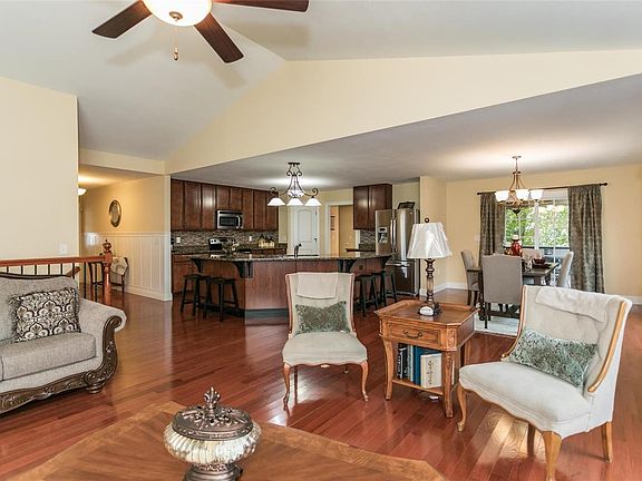 Numerous upgrades best describes this home. Built in 2011 by the current owners it features a main level master suite, third bedroom with possible fourth, three bathrooms, completely finished basement walkout basement, wooded lot with creek view, gas fireplace, hardwood, ceramic tile and carpeted floors, built in entertainment center, upgraded lighting, new lawn sprinkler system, covered deck plus separate patio and many other features.