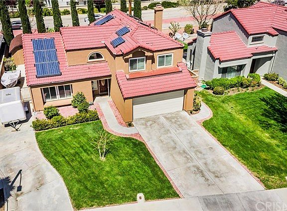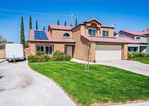 Imagine yourself living in this upgraded 4 bedroom, 3 bathroom Cambridge Home in a desirable westside Lancaster neighborhood. Gourmet kitchen includes upgraded stainless steel appliances, custom cabinets and granite counters! Sellers are INCLUDING 2 55" TV's (UPSTAIRS), FRIGIDAIRE REFRIGERATOR AND FREEZER, as well as LG WASHER AND DRYER IN GARAGE. The large master suite features an attached bathroom with granite counters and double sinks. Downstairs bedroom has double entry doors and a full bathroom, perfect for a home office or guestroom. Tile downstairs and newer wood laminate flooring on the stairway and upstairs. Thousands of dollars in upgrades including custom interior paint, water heater, a newer heater & air conditioning system, garage door, SOLAR POWER and NEW WINDOWS (2018). COMPLETE EXTERIOR WAS REPAINTED in March 2020! Save money on utilities in the Summer with the evaporative cooling system. Entertainer's backyard includes a large covered patio, mature landscaping, greenhouse/storage shed and PAVED RV PARKING. This well-appointed, move in ready home won't last long!