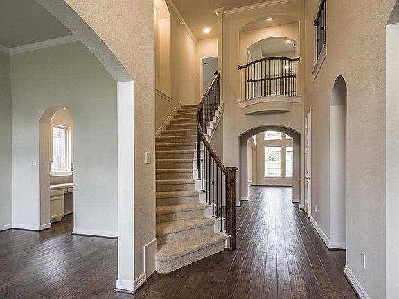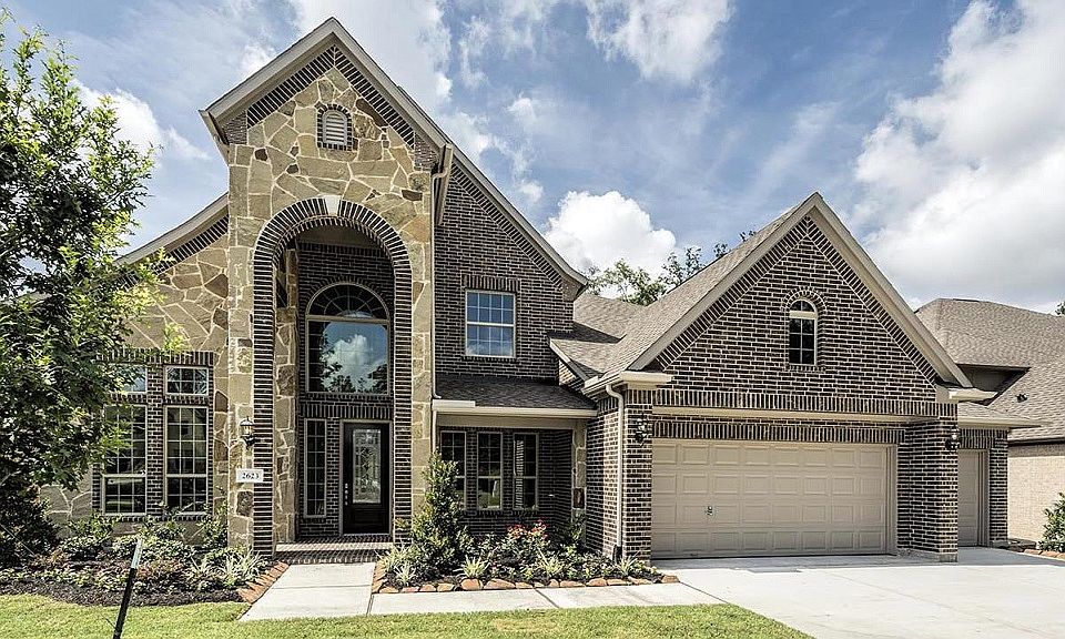 As you walk in to the Bevington floor plan you will have your formal dining and formal living/opt. study flanking the two story foyer. The two story family room with optional corner fireplace is open the large island kitchen. The family and breakfast both have views to the optional rear covered patio. The large master bedroom with optional bay window creates a relaxing retreat. The Master mathroom has dual vanity sinks, a corner tub opposite of the shower & large walk in closet. The tandem 3rd garage bay can be built as an optional bedroom 5 with bath. Upstairs you will have 3 bedrooms plus a game and media room. There are options for a Master bedroom and an additional bath upstairs. Optional coverd balcony off of gameroom will create a wonderful entertaining area.