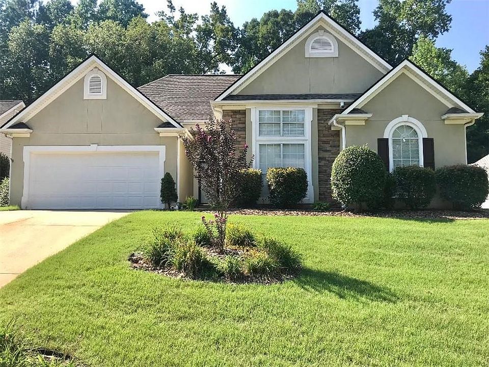 Find your dream home in this one-level stepless ranch in the impressive Mirror Lake Golf Community with several pools, tennis courts, walking trails, and playground areas. Once you enter you will see the spacious Vaulted Great Room with cozy fireplace for those winter nights! Great Room opens up to the kitchen that features granite countertops, ample cabinets and counter space, pantry and stainless-steel appliances, dining area and much more! Walk out to the inviting Sunroom to entertain or relax along with private patio for your enjoyment. The primary suite is generously sized for your private retreat along with an attached large bathroom featuring separate garden tub and shower, double vanity and walk in closet! The other two bedrooms could be used for guest room or perfect for a home-office! Home features 2-car garage for secure parking and extra storage space. This home boasts a spacious and inviting atmosphere with many windows allowing the natural light to come in! Yard is professionally landscaped and well maintained and features a beautiful fenced in yard! Home is eligible for USDA and GA Dream loans which require 0% down payment. Location is awesome just minutes from I-20, with quick access to shopping, dining, and minutes from everything! Hurry to see!