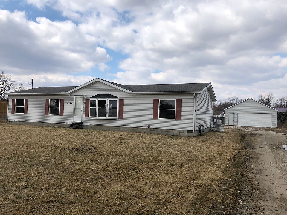 Wheel of fortune! You will be the lucky winner with this remodeled ranch home on 1/2 acre. Detached 2-car garage & fenced yard are a plus. New roof, windows & siding. Plus new flooring throughout the home. Split floor plan has master bedroom and bath on one side of the house and 2 bedrooms and full bath on opposite side of house. Kitchen has all new cabinets, counters & flooring. Stainless steel appliances stay, too. Kitchen is open to dining and family room. Central air to keep you cool. Don't be late! Call today.