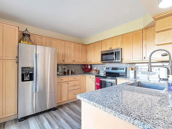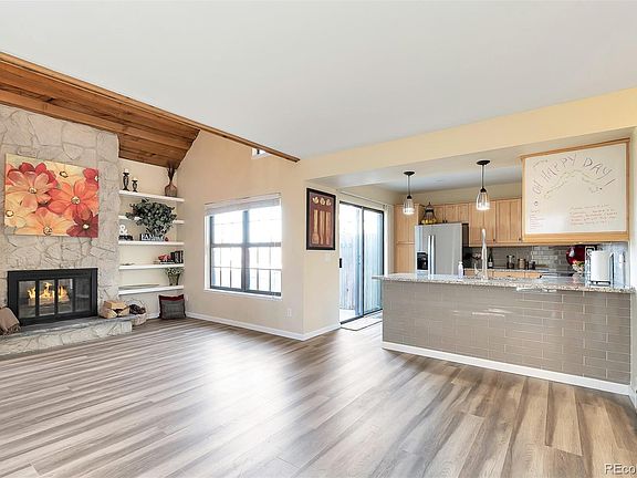 Welcome Home! This newly updated townhome located in Heather Ridge South and the coveted Cherry Creek School District is ready for you to move right in! The spacious main level has new LVP flooring throughout. The kitchen has tons of storage and boasts new granite countertops, stainless steel appliances, a subway tile backsplash and a beautiful subway tile accent wall. Step outside onto your private patio with beautiful golf course views. The vaulted ceilings in the living room/dining area give the rooms an open feel. You'll enjoy many evenings cozied up to the wood-burning fireplace in the spacious living room. The main level has a large bedroom with new carpeting and dual closets. A full jack and jill bath that is accessed from the bedroom and the hallway complete the first level. Upstairs, a beautiful master suite with tons of storage and a ceiling fan await you. The private en-suite master bath has been updated with dual vanities. The upstairs also has a large loft area that is the perfect space for a study. Don't wait come see this one today!