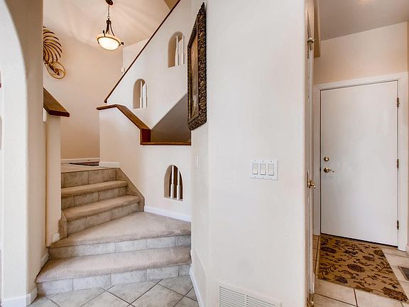 Lovely 2-story townhome in the area of The Grove in Briargate with Pikes Peak and Rampart Park views and near the Skyline Trail system for an easy biking or walking commute around the city. Two-story entryway and great room with wall of windows framing the gas fireplace plus wired for surround sound. An archway leads into the dining room with walk-out to the spacious wood deck that is piped with a gas line for a grill. The gourmet kitchen has a pantry, wall oven, a new stainless steel dishwasher, tile floor and new backsplash. The laundry room and powder room are combined and has built-in shelves and a tile floor. The landing for the 2-car garage is off the main level and has a coat closet plus an extra wide stairway that leads to the lower level family room for easy of furniture moving. Completing the lower level is an additional bedroom with attached full bath and a storage