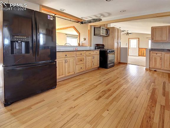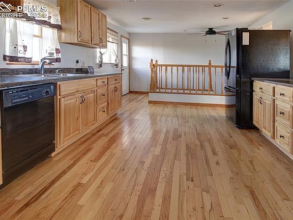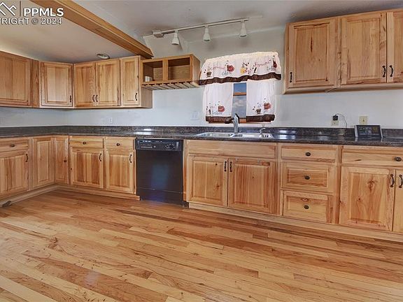Discover 40 acres with stunning views of Pikes Peak and panoramic 360-degree scenery. This property boasts a recently updated exterior, including a fresh coat of paint, a new roof, and new gutters and downspouts, all replaced just two years ago. Enjoy unforgettable evening sunsets from a spacious, large wood deck that overlooks the Front Range. The home features real hardwood flooring, a modern kitchen with a gas range, and ample storage space. There are multiple storage and outbuildings for your convenience and plenty of room to expand. The partially finished basement with a cozy pellet stove offers additional living space.