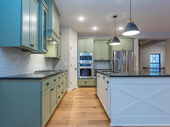 Contemporary farmhouse rambler with over-sized garage by Price Custom Homes! Stunning black-clad windows, white board & batten siding, shed roof accent, and front porch welcome you into this meticulously built home. Gourmet kitchen includes a 4x8 granite kitchen island, vented wood hood with cooktop, back-splash, walk in pantry, and wall oven/micro combo. Easy to entertain in this home with dining room opening into the kitchen and great room and gorgeous fireplace wall. Large master suite with custom tiled walk-in shower and double sinks. Mud room features a drop zone and large closet. Convenient main floor laundry. Lower level is completely finished with wet bar/island, & workout room, 2 additional large bedrooms and full bathroom. Other lots and floor plans available!