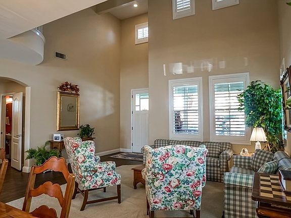 5 Bedroom Upgraded Pool/Spa Home, Elegant Kitchen Remodeled in 2015, 6 Burner Viking Gas Stove & Oven, One Electric Convection Oven, Micro Wave, Granite Counters, All New Upgraded Cabinets, Island with 4 bar stools, Ceramic Wood Look on First Floor, Custom Wood Shutters Throughout. Home repainted inside and out, Custom built in shelving and drawers around Family Room Fireplace and TV, Vaulted Ceiling in Formal Living Room, Master Bedroom has Electronic Igniter Fire Place, Built Ins in Master Walk-in Closet, Upgraded Shower in Master, Romantic Balcony with a great view of the hillside off the Master. Ceiling Fans in all Bedrooms, Bedroom Five has New Carpet and a Walk-in Closet. Closet added to Loft that is converted to 5th Bedroom. You will all enjoy the Pool, Patio Area & Fire Pit in the Back Yard, Pool has New Pool Sweep and tile has been cleaned and Stone Re-Caulked. Appealing easy care landscaping in the back and front yards. Relaxing covered front porch. The Stevenson Ranch Richard H. Rioux Memorial Park is only about 6 Blocks from the home. The park offers a mile jogging track, tennis courts, basketball court, baseball diamond, picnic areas w/Bar-B-Q grills (one fenced in area has multiple tables and grills that can be reserved for private events by the home owners), a built-in playground separated into under 6 years old & over 6 years old, youth co-ed t-ball, division 1 youth soccer, spring day camp & tennis lessons.