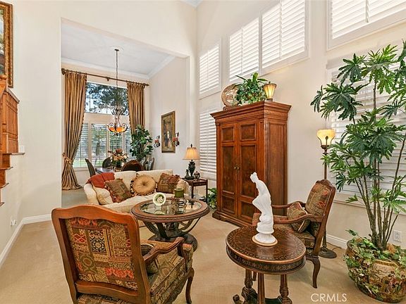 Stunning and Designer Perfect Home with nearly 2500 sq. ft. on a cul-de-sac in the gorgeous Califia neighborhood located in the heart of Mission Viejo! Currently configured as a 4 bedroom, the floor plan originally allowed for 5 beds but the "Great Room" builder option was chosen! Home has been lovingly remodeled throughout including a chef's kitchen with added island and gorgeous custom cabinetry including many pull out shelves and drawers. All 3 baths are remodeled using a generous amount of natural stone. Newly refinished and honed travertine flooring through much of the downstairs. Soaring cathedral ceilings, plantation shutters throughout, whole house water softener system added plus home was proactively repiped last year, not due to leaks. Lush and tropical backyard with plenty of grass, serene view of the neighborhood hillsides and trees, gazebo and BBQ island with a beautifully maintained grill and lighting. Comfy seating area with gas firepit. Huge 3 car garage with tons of built in storage and work bench. Walking distance to award winning Bathgate Elementary. Comes with Lake Mission Viejo privileges. Hurry on this meticulously maintained home in one of the nicest neighborhoods in South Orange County.