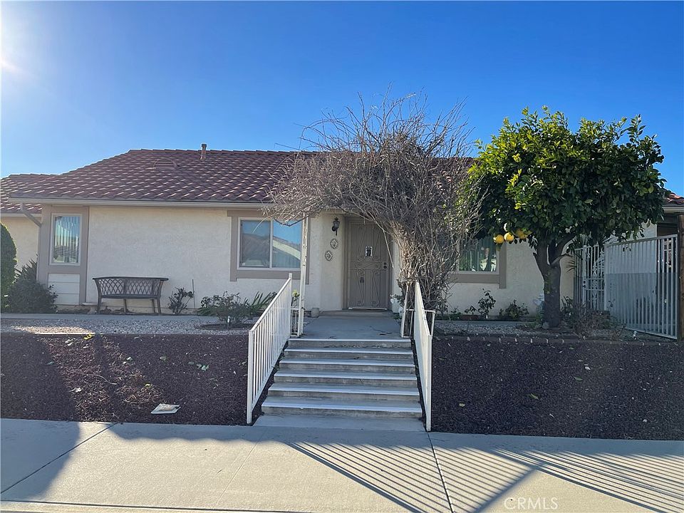 Highly sought after Patio Homes 55+ community! This lovely home offers 2 spacious bedrooms with a den/office or easy conversion for a 3rd bedroom, 2 bathrooms. This home is located on a large desirable corner lot, beautifully landscaped with aesthetically pleasing two tone rock. There is a pink grapefruit tree in the front yard and a lovely orange tree in the back. Low maintenance yard work with automatic sprinklers for the plants. The two-car garage has storage cabinets. HOA includes community Clubhouse with a full kitchen, Pool, and spa along with trash services and Community events, holiday celebrations, coffee & conversation and more throughout the year. Don't wait Call Now for your exclusive appointment to view this home! Hurry these homes sell fast, call now!