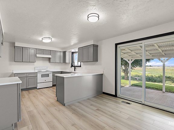 Beautifully remodeled home, nestled on 2.4 acres of irrigated land. NO HOA's or CCRs! Surrounded by picturesque & lush farm ground, this property offers stunning views in every direction. Step inside to discover a fully remodeled interior featuring all new cabinets, granite countertops, light fixtures, showers, vanities, toilets, mirrors, and flooring throughout. Fresh paint and a new water heater complete the updates, ensuring modern comfort and style. Outside, the expansive 2.4 acres with water shares through Black Canyon Irrigation provides endless possibilities. Build your dream shop, bring the horses & livestock, or create that perfect hobby farm—the opportunities are abundant. And to top it off your will love the 22x18 shop. Enjoy the tranquility of rural living with the convenience of a quick drive to nearby towns. Come experience the wonderful rural charm in this stunning property. Welcome home!