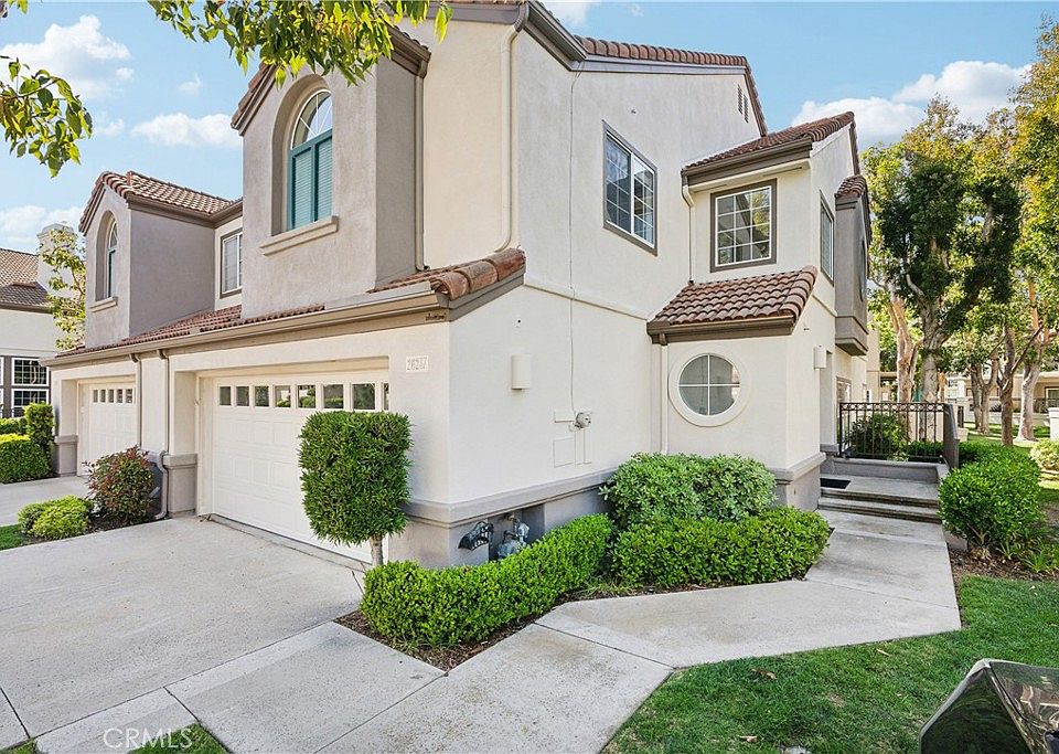 Experience luxury living at 26237 Palisades in Mission Viejo's Greystone at Califia neighborhood. This exquisite home has been completely upgraded, boasting a bright and open floorplan with luxury vinyl plank floors throughout. Step into the family room, where high ceilings and large windows flood the space with natural light. Entertain effortlessly with a built-in wine fridge and bar storage, seamlessly flowing into the dining room and kitchen. The kitchen is well-appointed with granite counters, white cabinets, stainless steel appliances, and direct access to the two-car attached garage. A powder room completes the first level for added convenience. Retreat upstairs to the primary bedroom oasis, offering vaulted ceilings, sliding doors to a private balcony, and a walk-in closet with decorative barn doors. The en suite bathroom has been beautifully remodeled with a quartz vanity, dual sinks, and a walk-in shower. Two additional bedrooms share an upgraded jack and jill bathroom. Outside, discover a tranquil modern backyard with concrete tile and artificial grass, perfect for relaxation and entertaining. Enjoy resort-style amenities including a community pool and spa, all within a low tax base and no mello roos tax community. With nearby award-winning schools, restaurants, shopping, hiking/biking trails, parks, and Lake Mission Viejo privileges, this is Southern California living at its finest.