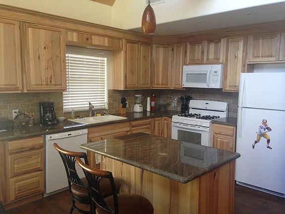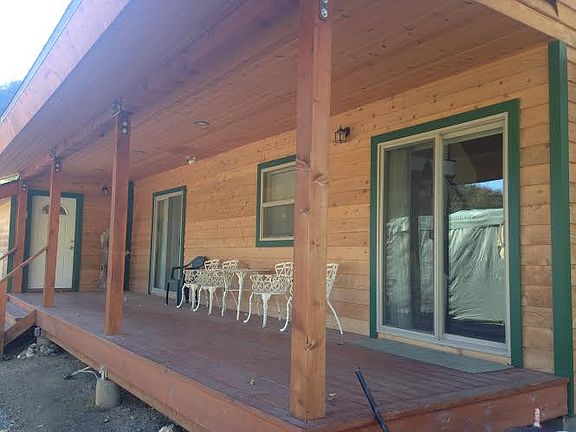 This 3-bedroom, 2-bath custom home sits on the sunny side of Pine Mountain Club and features spectacular mountain views. The spacious interior feels is loaded with extras, including large view windows. The kitchen has hickory cabinets, granite counter tops, including an island, and radiant electric-heated floor. The master bath includes travertine tile, a corner Jacuzzi tub with built-in heater, dual shower heads, hickory vanity, and granite vanity top. The ceiling is constructed with tongue and groove pine, and floors feature realistic wood grain tile from the entryway through the kitchen, dining room and hallway. A stairway constructed with solid oak treads includes a natural, rustic looking rail with thick copper-cable runners. Appliances include central heating unit and on-demand tankless water heater. Exterior walls are lined with rustic cedar siding, and the home features extensive covered porch areas.
