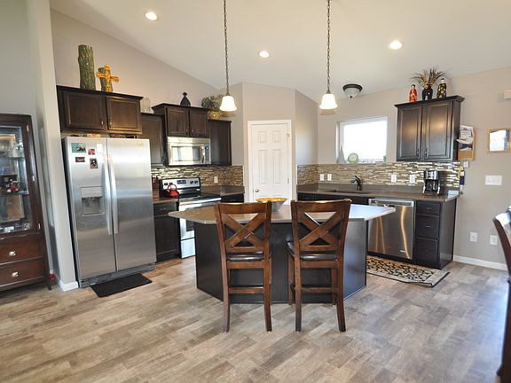 This spacious newer five bedroom home offers an open floor plan with vaulted ceilings located near the new Legacy High School. The kitchen has a center island, pantry, lots of birch cabinets, quartz countertops, backsplash, and stainless steel appliances. The patio doors lead to a 12x 12 cedar deck. The master suite has a coffered ceiling, huge walk-in closet, a sit down shower, separate tub, and double sinks. You will enjoy the walk-out lower level with wet bar. There is a built in audio system in the family room. Heated garage with water & floor drain. Professionally landscaped, RV pad, built in fire-pit, vinyl siding and so much more!
