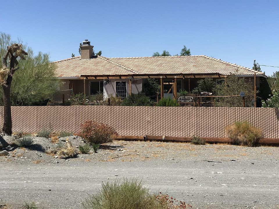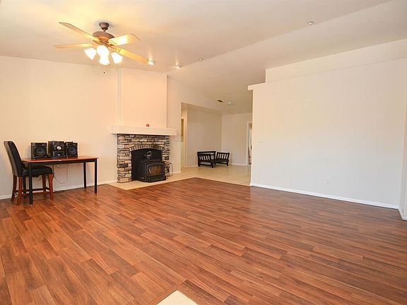 Wow! This 2.15 acre property has a charming 1691sqft house has 4 bedrooms 2 bath. Kitchen has tile floor, granite counter tops, pantry, freestanding stove, microwave and dishwasher. The dining has tile floors with sliding glass door leading out to a enclosed covered patio that has a huge storage area. Living room has Vinyl-wood floors and a wood stove insert in the fireplace, which is great to have on those really cold winter nights to keep the whole house warm. Nice size master bedroom also has a private enclosed covered patio area. All inside walls have been freshly painted. Many large dog runs for your fur babies to be safe in and a chicken coupe. Covered patio in front, with privacy fence all around. Lot is fully fence with chain link. 2 car garage.