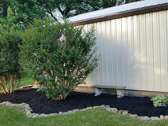 House is designed to see the sunrise off of the 40' back porch in the morning and to watch the sunset at night while sitting on the beautiful full length front porch. This home is just outside of Georgetown city limits, only 3 miles from schools and 1 mile from hwy. 64. It takes 16 minutes to get to downtown Louisville. Quiet, private, relaxing park-like setting, 3 stall horse barn, 4 board wood fence around 3 acres, a lean-to with 2 stalls, 2 areas for hay storage, feed room, 30 X 50 garage with storage attic. Long blacktop circle driveway. 90' artisan built custom sandstone wall in back yard. Amazing. All stainless steel appliances. Top Quality granite in newly remodeled kitchen. Both baths are newly remodeled. Custom designed wood floors throughout. Tile in Master Bath. Custom designed artisan sandstone fireplace.