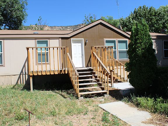 BRAND NEW 3 bedroom 2 bathroom home with vaulted ceilings and an open floor plan on 5.28 irrigated acres! The home has a beautiful new kitchen with cherry kitchen cabinets, brand new appliances, including gas stove/oven exhaust fan, refrigerator and dishwasher. Tons of storage! There are 2 large metal shops, one 30ft x40ft with 16 foot drive through doors on each side, electric, and water, and one 50ft x 100ft metal shop with electric. There is a small wood shed with small carport or lean to. The chain link fence is nice for pets. The front yard is lined lined with huge established willow and cottonwood and maple trees. There is pear, apple, apricot, cherry and peach trees on the 5 acres also. The home has wood decks on every access providing great sitting areas. There is 1 share of MVI water with underground sprinklers in the front yard and risers all the way down the middle for irrigation on the back of the property. There are outdoor spickets to make watering easy and one in the large newer shop. There are great views of the legendary Sleeping Ute to the west and great views of the Mesa to the back. This property is a MUST SEE.