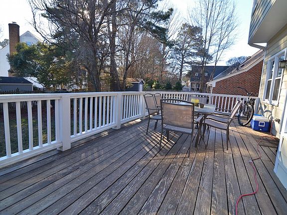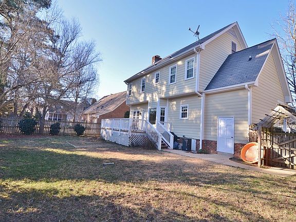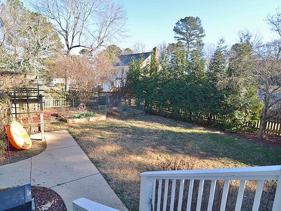Beautiful home has oversized living room with brick wood burning fireplace. Sunny kitchen with granite counters, stainless steel appliances, lots of counter space & a cozy breakfast nook. Hardwood floors on 1st floor. Bonus room on third floor. Spacious master bedroom. Gorgeous updated master bath with dual sinks & marble shower. Large deck where you can relax in the fenced back yard. Community pool & tennis court. Great location with shopping & dining nearby & quick access to I540. Pet policy: 1 small-medium dog permitted.$30 monthly pet fee.