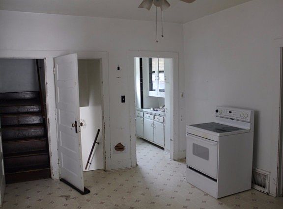 Relax on the covered porch of this cute home. Upgrades include newer Newer roof, furnace, A/C, and water heater. Walk out basement was previously a garage and could be converted back. Storage shed in fenced back yard. Full basement gives tons of storage. Off street parking for two vehicles. Check this one out for great value and livability!