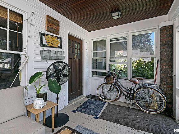 Charming 1.5 story home with 3-bedrooms, 1 bath in Davenport! Home is conveniently located next to Vanderveer Park, bike path, dining, shopping and schools. Walk into the relaxing covered front porch. Open concept living room and dining room has original wood floors, gorgeous dark trim, and large windows that let in natural light. Cozy kitchen has white cabinets, hardwood floors and walks out to back patio. Main floor bedrooms have closets for storage. Large private master bedroom is on upper level and has cute window seat. Large fenced in yard has patio for entertaining and shed for storage.