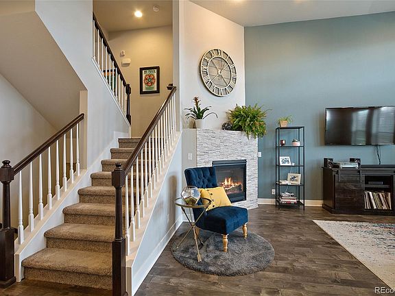 Incredible Bluff Lake location! Minutes from Eastbridge Town Center, Stanley Market, Anschutz Medical Center, VA Medical Center, Children's Hospital Colorado and quick and easy access to the light rail and 225 freeway, the location is ideal! This west facing row home is stunning! This 3-story, 3 bed, 2.5 bath interior unit offers a classic, contemporary layout and windows galore! The family room boasts a 19' volume ceiling & corner gas fireplace. The gourmet kitchen features an oversized island and opens to the dining room. The master suite is located upstairs and features dual sinks and a walk-in shower. Two additional bedrooms and a full bath complete the third floor,first floor has 2 car attached garage. Design choices are ordered and final. *PICTURES ARE OF DIFFERENT UNIT, SAME FLOORPLAN*