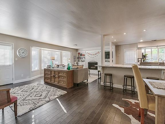 Beautiful remodeled modern ranch in Grandview Country Club! You will love the spacious open floor plan with living, kitchen and dining all open to each other. The living room includes wood burning fireplace, built-in bookcases and large bay window looking out onto the backyard. The kitchen has been completely remodeled with solid grey quartz counter tops and back splash, stainless appliances with gas range, large island with gorgeous grey vein granite and room for 6 people to sit around. The master suite is very inviting with french doors out on to the backyard, and en suite bathroom with walk-in shower. Two additional spacious bedrooms and hall bathroom that has been completely remodeled with double vanity, quartz counter tops, tub/shower with updated tile. Laundry is off the hallway close to all the bedrooms. Off the kitchen is a room with multiple functions that could include a mudroom, office, workout area and storage, with floor to ceiling windows letting in great natural light.