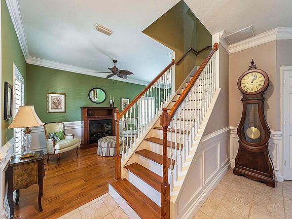 REDUCED! REDUCED! REDUCED! Owners so motivated they will throw in the 75" TV!!! Charm abounds in this 3 Bedroom + Media Room, 2.5 Bath, 2-story lakefront home with countless hand-crafted details. Hand-scraped wood flooring flows both upstairs and down, and enhances the beautiful staircase. Custom wood wall treatments and moldings can be found throughout the entire home, and the island kitchen features custom white-washed brick walls and white cabinets. Plantation shutters throughout and new impact windows recently installed on all second floor windows. Enjoy an open kitchen concept to the family room, as well as a formal living/dining room area, complete with electric fireplace. Upstairs you will find a huge master suite with additional lounge area. The two spacious guest bedrooms share a guest bath, and the media room with surround sound is perfect for movie night, but could easily be converted into a fourth bedroom. Beautiful lake view and plenty of room for a pool. Very low HOA fees and great amenities, including community pool, state-of-the-art fitness room, clubhouse and tennis. Conveniently located next to the new Publix grocery and close to great schools.