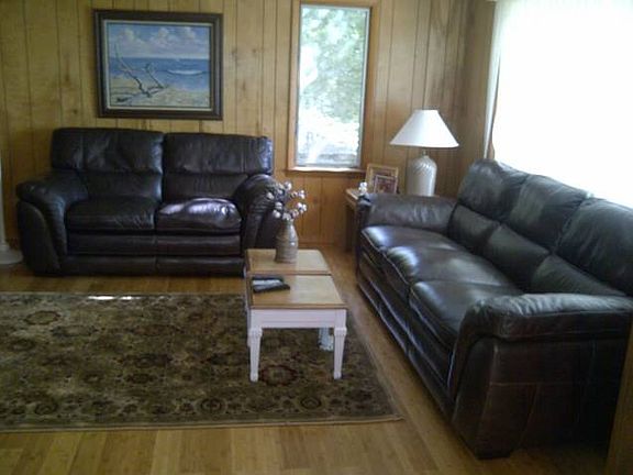 Wixom Lake waterfront with gentle slope to the sandy bottom lakefront. Potential!, Potential! Large and wide property with great, panoramic views. Newer five inch well, newer 110 feet of steel seawall, Anderson windows, new front and back doors, updated bathroom on main floor. Walkout basement with bath, wood stove and natural gas furnace has great Rec Room potential. Balcony overlooking the huge yard and waterfront. Upstairs is potential for 2 more bedrooms. Open floor plan ceramic and hardwood flooring complete the picture. Mr. and Mrs. Clean live here. Partial furnishings. The only thing missing is you!!!