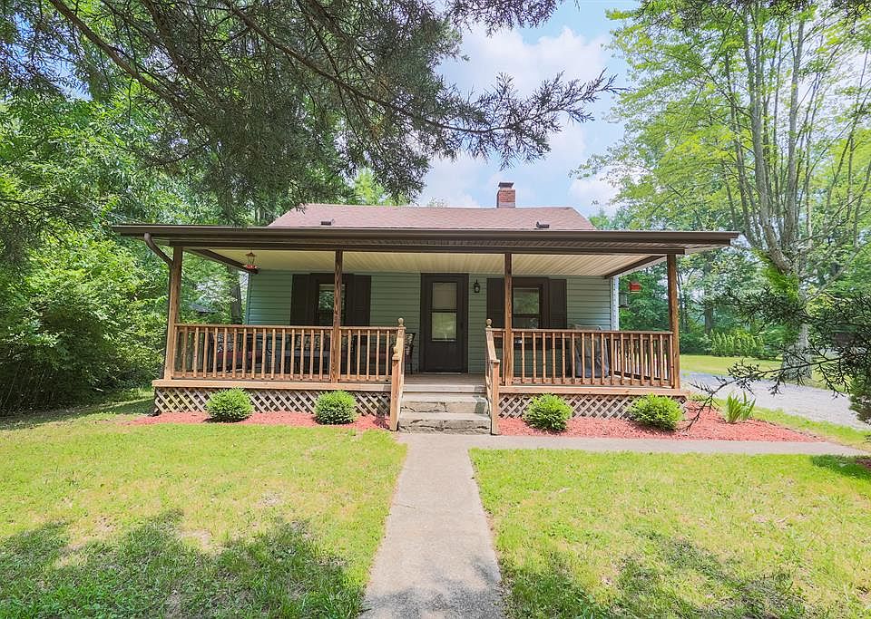 Adorable bungalow on a quiet county road! Peaceful overlooking a farm field, large trees, half acre lot, have some farm fresh eggs from your chicken coop! Huge front porch. Immediate occupancy. Home Warranty. Check out the freshly finished hardwood, paint, please remove your shoes, HVAC is being repaired.