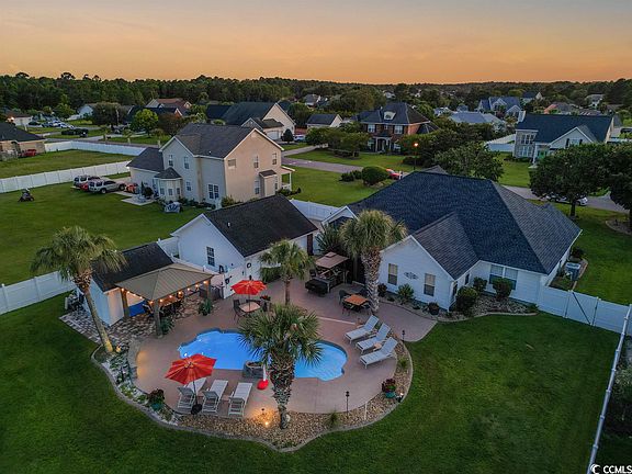 CAROLINA LIVING AT IT'S FINEST! Welcome home to this spacious 3 bedroom, 2 bath custom built home featuring an attached 2-car side load garage (heated/cooled), 25x25 detached garage with 1/2 bath and window ac unit, shed, Carrier Infinity 16 SEER HVAC split system, pool, outdoor shower, Carolina room, lanai, covered pergola, outdoor kitchen, landscape with low voltage lighting & plenty of room for all your toys. Situated on a .53-acre lot this home is located in the Legacy at Hunters Ridge, known for its rich mature landscaping, award winning schools & LOW HOA fees. When entering the foyer you will be greeted by a spacious living room with vaulted ceilings & low maintenance tile throughout. Step into the sun filled Carolina room featuring glass doors for privacy & beautiful gas fireplace that overlooks the private fenced-in yard, would make a great office space. The Kitchen offers custom cabinets that provide ample storage, granite countertops, stainless steel appliances, breakfast nook & pantry. Hallway behind the kitchen houses the formal dining room for easy entertaining and offers a tray ceiling & practical laundry room leading to the 2-car attached garage for easy access to the kitchen. The owner suite sits off the back of the home for added privacy & features new porcelain tile floors, tray ceiling & ceiling fan, plenty of space to create a sitting area, ensuite offers a new double vanity with lots of storage, new tile floors, new plumbing fixtures, garden tub, walk-in shower and spacious master closet with custom shelving system. This split bedroom plan is a great design to accommodate privacy for everyone. Enter your BACKYARD OASIS overlooking your own private pool with tropical landscaping. Located within close proximity to the beach, airport, medical facilities, restaurants, golfing, shopping, dining & all the Grand Strand has to offer. If you are looking for a spacious private property with your own pool, garage space for tons of storage and room to store your toys than you found it! Call to schedule your showing today!
