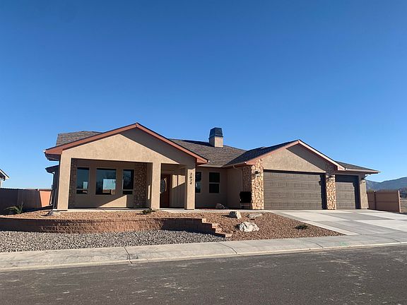 This is a "RUBY" floor plan in Emerald Ridge Estates, primary suite includes barrier free shower, soaking tub, double under mount sinks in vanity, spacious walk-in closet, with exterior door to back covered patio,. This home offers 560+ sq ft of covered patios, front patio overlooks park area, Monument & Uncompaughre Range. Low Maintenance Stucco & Natural Stone Exterior, Great RV parking, built-in exterior studio/storage area with electrical & sheetrock completed, front landscape completed, gas & electric on the back porch area, 6' composite privacy fencing. This home is ready for you to move-in.