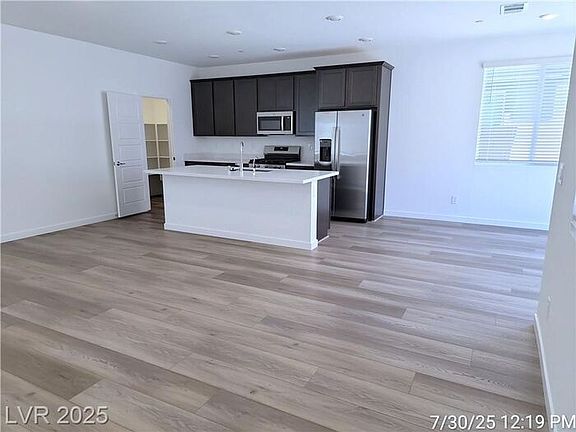 Be the first to call this Inspirada beauty home! This brand-new 5-bedroom, 4-bath home blends comfort and style in one of the valley's most sought-after communities. The open-concept layout features sleek tile flooring throughout the first floor and plush carpet in all bedrooms for a warm, inviting feel. The chef-inspired kitchen is the heart of the home, boasting quartz countertops, stainless steel appliances, a large island, and ample cabinet spaceperfect for entertaining or everyday living. One bedroom and full bath is conveniently located downstairs, ideal for guests or a home office. Upstairs offers a flexible loft, three additional bedrooms (including one with its own full bath), plus a spacious primary suite with walk-in closet, dual sinks, and a separate tub and shower. Attached 2-car garage. Enjoy all Inspirada has to offerparks, pools, trails, and playgrounds. Pet considered w/ deposit. Landscaping pending HOA approval.