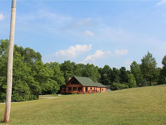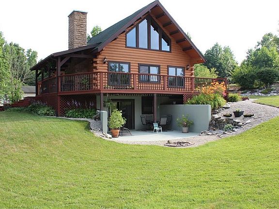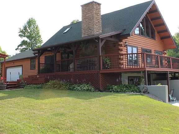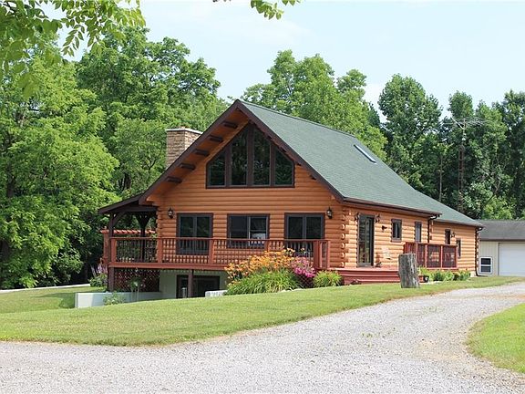 This home is absolutely beautiful! This log cabin home is nestled on just over 5 wooded acres in Ben Logan School District. Built in 1997, this home has been well maintained and is pristine inside and out. Featuring 4 bedrooms (2 upstairs, 2 down), 2 and a half baths, a loft with skylights (with built in shades) that overlooks the kitchen, dining and family room, as well as a full, finished, walk out basement. This home also features 2 functioning fireplaces. Fireplace in the basement is now a pellet stove. If that's not enough, the 2 car attached garage leads into a mud/laundry room (there's also washer/dryer hookup available in the basement) and also features a half bath. The outbuilding is also spectacular! This property is truly a must see!