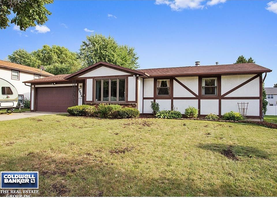 3 bedroom ranch home features large bedroom that could be used as family room. Home is well maintained in great condition.Pleasant, convenient kitchen; patio doors off dining area lead to patio and large, manicured back yard which is completely fenced in. Sky lights flood rooms with light. Central air. Four car garage, finished rec room in basement.