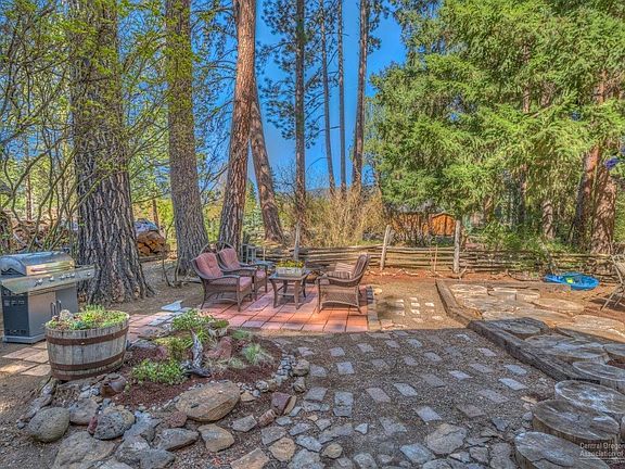 Classic Camp Sherman Retreat Ideally located on a beautiful wooded lot in the heart of Camp Sherman. This classic mountain cabin bordered on 3 sides by common area is only steps from the meandering banks of Lake Creek. A large country style kitchen features a cozy area, wraparound counters, skylights and wood stove. Beautiful knotty pine paneling throughout the 3 bedroom, 2 bath, 1657 +/- sq. ft. home. The living room has large windows viewing vine maples, pines, and aspens. There is a rock hearth and faux fireplace for atmosphere. Lovely outdoor patio area is a great setting surrounded by old growth pines, firs, aspens and maples. There is a detached single garage. The property has direct access to an extensive trail system leading to creek, meadows and National Forest. Close to the Metolius River and year round recreational possibilities.