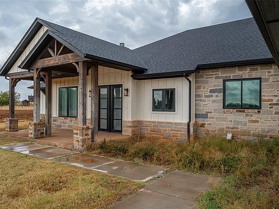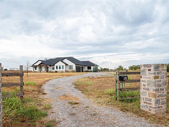 Stunning modern farmhouse on 5 acres! *custom iron doors *tall ceilings *floor-to-ceiling stone fireplace *open floorplan *quartz countertops *15x5 island * tankless hot water heater *office/study *Whole house Generac generator *6 burner gas range *Jack-and-Jill bathroom *garage floor storm shelter *oversized covered patio with views of the pond. *oversized primary bedroom *luxury ensuite *spa soaker tub *marble flooring *huge walk-around shower *two vanities *spacious bonus/flex room *iron fenced backyard *3 car garage. This home has it all, schedule your showing today!
