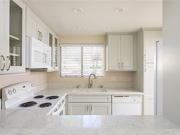 Gorgeous remodel on this ground level condo with an unusually large yard on a quiet cul-de-sac. Brand new kitchen with new cabinetry featuring soft close drawers and slide out pantry shelving, quartz counter top, porcelain kitchen flooring, new double Kohler sink, recessed lighting and a new built-in microwave. New wood like pergo flooring accented by five inch baseboard in the spacious bedroom and great room. New interior paint. Re-piped throughout. Remodeled bathroom. Private laundry room with washer and dryer included. Lots of nearby parking on this cul-de-sac plus a designated parking space (#10) right in front of the condo. Newer water heater. All appliances included. Lake Mission Viejo privileges including boating, fishing, outdoor concerts, picnics, sandy beaches and endless summer fun. VA and FHA approved. Better hurry on this one. Welcome home.