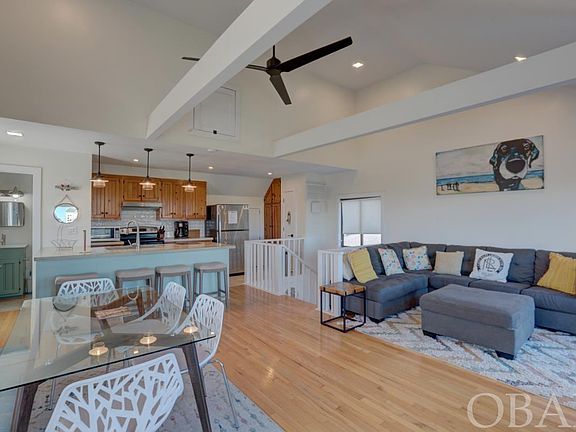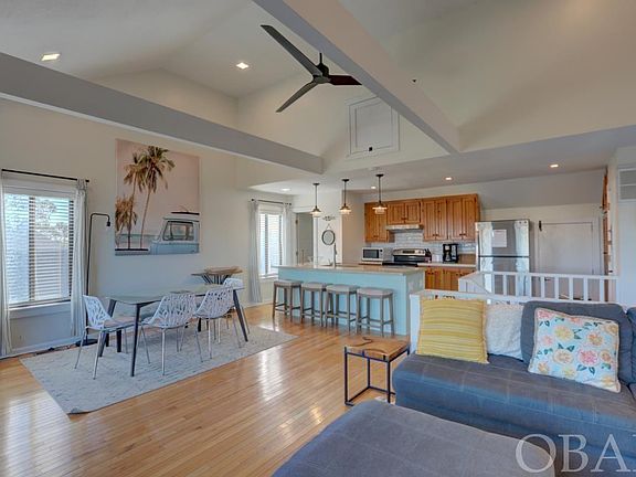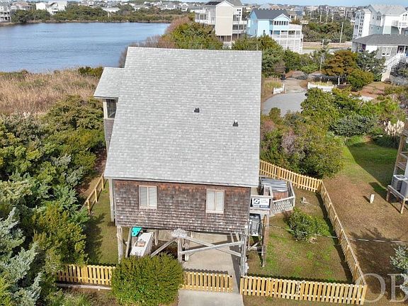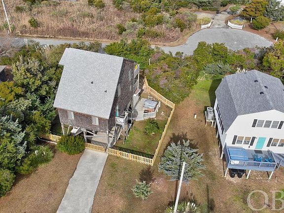 Delightful views await you at the Osprey cottage! Situated just steps from the oceanfront, this 3 bedroom, 2.5 bath home is just right for an intimate gathering of friends or small family. Wander down the private beach access path to a wide beautiful beach courtesy of the Cape Hatteras National Seashore! Get a bird's eye view of the lake from top floor of the home through the two extra large sliding glass windows in the great room or out on the spacious sundeck or the screened in porch. The open concept works well with the high ceilings merging the cozy but modern kitchen (note the poured concrete countertops) with soaring walls that catch the light in the living space. There's an elegant half bath tucked in on this floor as well as a large owner's storage area. Downstairs, there is one ensuite bedroom with a slider to the covered deck along with two other comfortable bedrooms and full bathroom. All bathrooms have updated vanities and toilets. Under house parking and dry entry makes life a little easier. Be sure to check out the outside shower, fish cleaning station and spacious storage shed. There's more to enjoy on the grounds of this home including a large fenced in yard for the dogs, a sweet fire pit, and a private hot tub for soaking and star gazing. Located on this charming street in the heart of Tri-villages, you'll appreciate that shopping, restaurants, groceries, and the post office are all within walking distance. Folks also enjoy biking around on the village multi use pathway to the National Park soundside day use area. There you can launch a kayak, have a picnic on the soundside beach or watch the windsurfers and kiters ride the wind. Fisherman, surfers and beach goers like the close access to many 4WD entrances in the park. Come see this perfect 2nd home, rental investment or primary residence. The Osprey will give you opportunity to play or relax all in your own backyard! Check back for drone pictures in a few days please...apologies from my awesome drone guy! And, use this link to see the magical path to the beach: https://shorturl.at/quMRT