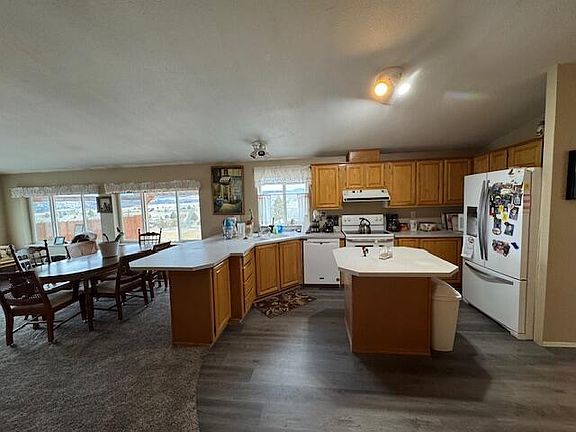 Nice Large MF Home On 8 Acres w/Panoramic Views! Gated entry, fenced and cross fenced, mt & valley views, 1993 mf home with 1782 sq ft of open concept living, beautiful kitchen w/island, breakfast bar, pantry and dining area, living room features vaulted ceilings, woodstove and slider onto deck, 3 bedroom, 2 bath, utility room, heat pump w/AC, vinyl windows, new carpet & laminate flooring, bonus storage room w/breezeway to attached double car garage w/work bench area, Trex decking, landscaped, metal roof, rain gutters, graveled driveway, RV hook up. $375,000